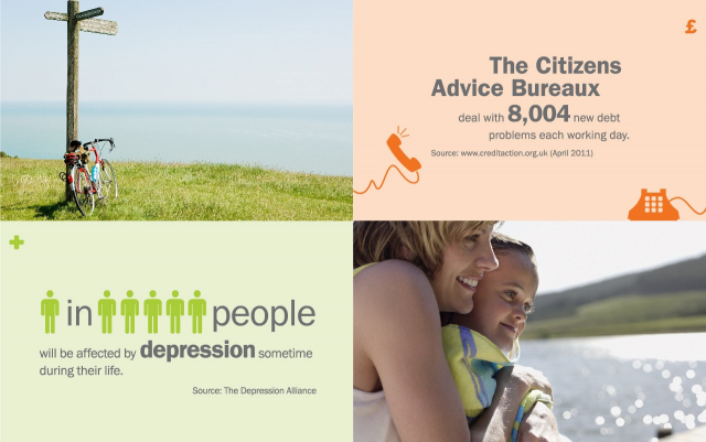 The LBOP content is a mix of LV= product information and sobering statistics relating to health, lifestyle and finance. The design challenge was to present this information, much of it quite depressing, in a digestible, palatable and appealing way.