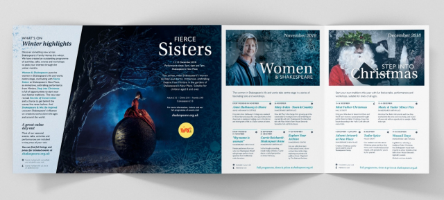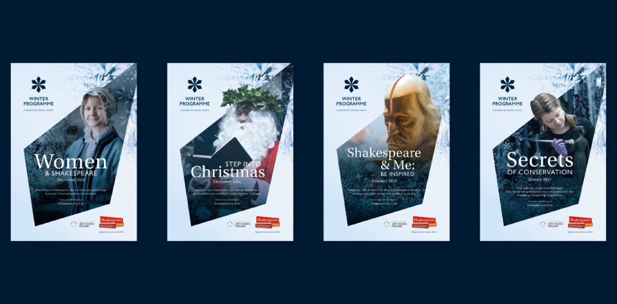 We concisely labelled each event e.g. workshops, performances, demonstrations and so on while still bringing to life the four themes running throughout the programme: “Women and Shakespeare”, “Christmas”, “Conservation” and “Inspiration” – one for each month.